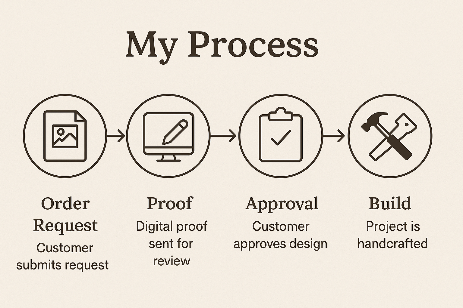 From rustic wood signs to laser-cut gifts, no two orders are ever the same. Whether it’s a name plaque, a business logo, or a personalized gift, I make it just for you, with care and precision.